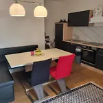 Een ingerichte kitchenette met een koelkast en glaswerk is beschikbaar als onderdeel van de zelfvoorzienende voorzieningen van het appartement. Wolfpassing/Mistelbach Ortsmitte busstation ligt op 200 meter verderop.